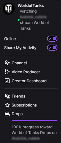 We usually announce on the portal when the official World of Tanks channels or content creator channels will have Drops enabled.