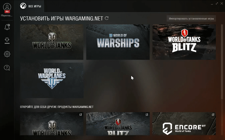 - Перейдите на вкладку ВСЕ ИГРЫ в Wargaming.net Game Center.